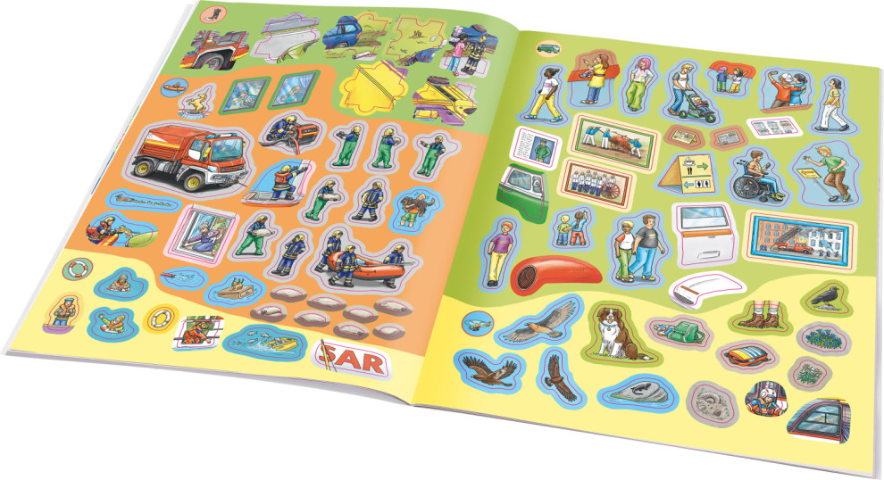 Môj prvý samolepkový zošit Zásahové vozidláSpoznaj hasičské, policajné a záchranárske vozidláSirény hučia a zásahové vozidlá vyrážajú do akcie! Môj prvý samolepkový zošit – Zásahové vozidlá je interaktívna a náučná knižka pre deti, ktorá odpovedá na všetky zvedavé otázky o hasičoch, policajtoch a záchranároch: Ako funguje hasičské auto? Prečo má sanitka maják? Kto riadi dopravnú nehodu? Každá dvojstrana prináša zaujímavé fakty, krásne ilustrácie a viac ako 300 samolepiek, ktoré deti využijú na dotváranie scén a plnenie zábavných úloh. Rozvíja sa jemná motorika, logika aj záujem o dôležité povolania. A keď sa niečo nepodarí – malá nápoveď na konci pomôže.
