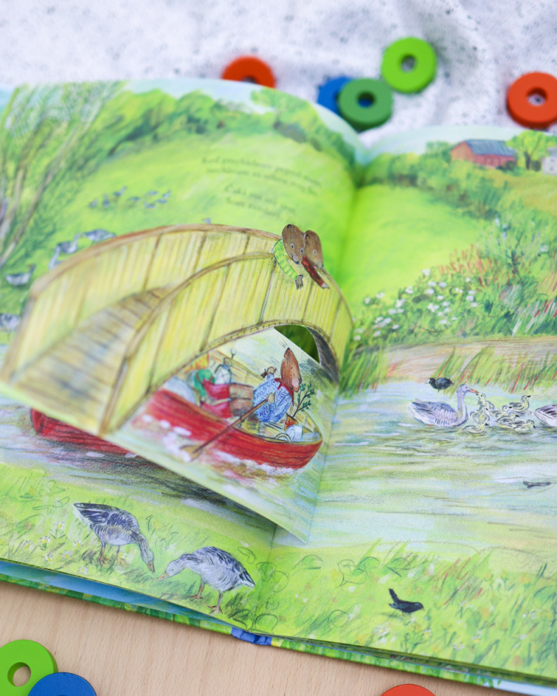 Myšiakova plavba po riekeKúzelná cesta plná objavovaniaPo úspechu Myšiakovho lesa prichádza Myšiakova plavba po rieke, nádherná obrázková kniha s otváracími okienkami, ktorá vezme malých čitateľov na pokojné putovanie po rieke. Myšiak sa vydáva na dobrodružnú cestu od svojho domova v lese až k ústiu rieky do mora, kde ho čaká starý priateľ. Počas dvadsiatich štyroch hodín spoznávame meniaciu sa krajinu, prechádzame okolo hustej vrbiny, riečneho ostrova či mesta so stavidlom. Myšiak stretáva nových kamarátov – bobrov, vodné vtáctvo aj hryzcov – a deti môžu nahliadnuť do ich príbytkov vďaka interaktívnym okienkam.
