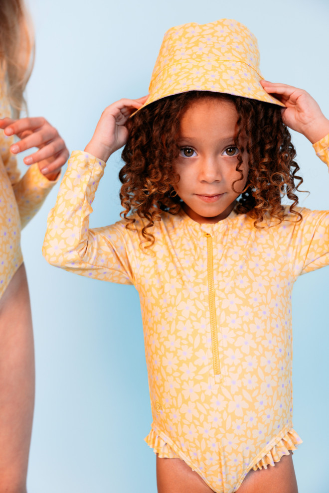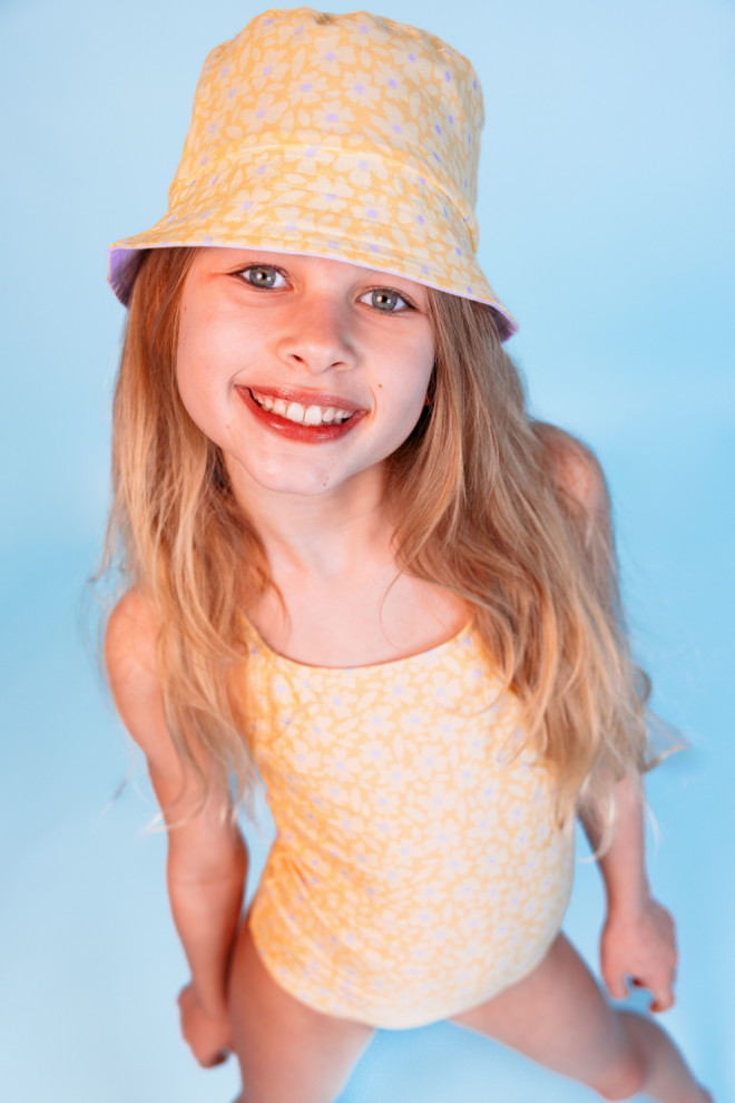 Obojstranný klobúčik s UPF 50+ Florish yellowDeti ochráni pred slnečnými lúčmi!