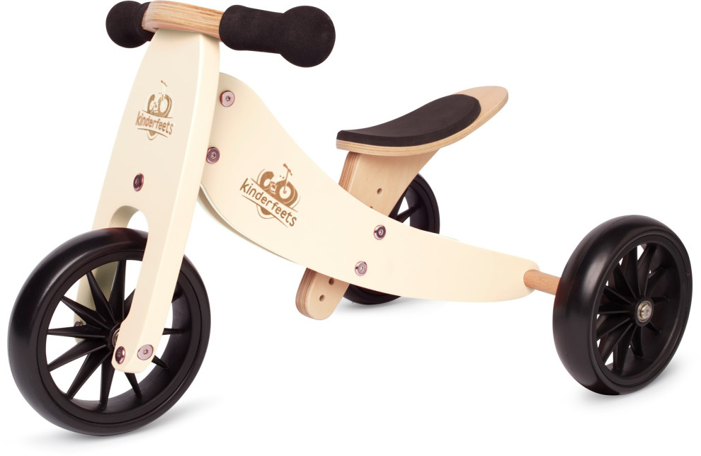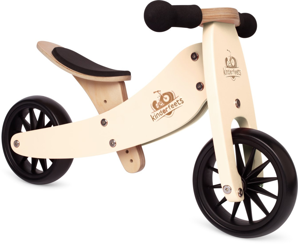 Odrážadlo 2v1 Tiny Tot KrémovéDoprajte dieťatku objavovať svet na kolesáchTúži vaše dieťatko začať jazdiť, ale nie je pripravené na balančný bicykel? Bicykel Kinderfeets Tiny Tot je najmenší balančný bicykel 2 v 1 a ponúka aj tým najmenším možnosť rozvíjať rovnováhu a koordináciu. Nízky priestupný rám umiestňuje detské nožičky bližšie k zemi, a tak sa deti cítia bezpečnejšie. Sedadlo je polstrované a nastaviteľné od 21,5 až do 28 centimetrov. Bicykel sa ľahko ovláda vďaka svojej nízkej váhe 2,3 kg.Odrážadlo sa ľahko zmení z trojkolky na 2-kolesový balančný bicykelDieťatko začína jazdiť na trojkolke. Keď je pripravené, odrážadlo sa ľahko zmení na dvojkolesový balančný bicykel. Jeho pohodlné a patentované konštrukčné prvky umožňujú malým deťom jazdiť bezpečne a bez strachu. Bicykel Tiny Tot je určený pre drobcov vo veku od 12 do 24 mesiacov.