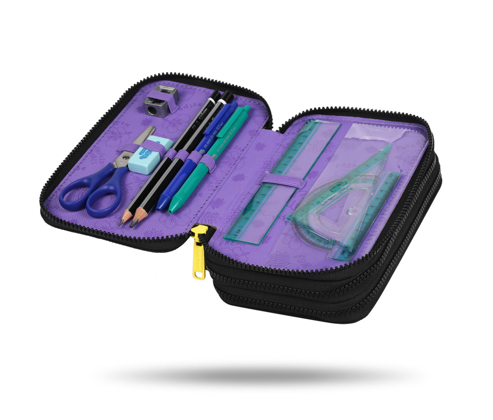 Peračník Jumper trojposchodový Stitch BlackVšetko potrebné na písanie a tvorenie v jednom praktickom peračníkuPeračník Jumper Stitch Black je dvojposchodový organizér pre deti, ktorý obsahuje všetko potrebné na písanie a kreslenie. S motívom Stitcha a odolným zipsom s kontrastným lemovaním je ideálny pre školákov. Gumičky na písacie potreby zaisťujú pevnosť a poriadok, zatiaľ čo vybavenie ako fixky, pastelky a ceruzky zabezpečia všetko, čo deti potrebujú pre tvorivé činnosti.Obsah:18× fixka18× pastelka2x pero2× trojhranná ceruzka HB2× pravítko1x uhlomer1× guma1× strúhadlo