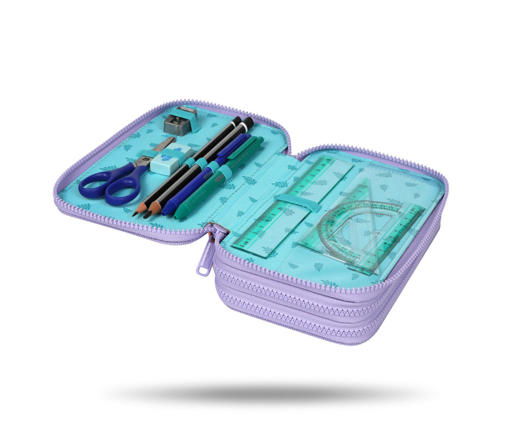 Peračník Jumper trojposchodový Stitch PastelVšetko potrebné na písanie a tvorenie v jednom praktickom peračníkuPeračník Jumper Stitch Pastel je dvojposchodový organizér pre deti, ktorý obsahuje všetko potrebné na písanie a kreslenie. S motívom Stitcha a odolným zipsom s kontrastným lemovaním je ideálny pre školákov. Gumičky na písacie potreby zaisťujú pevnosť a poriadok, zatiaľ čo vybavenie ako fixky, pastelky a ceruzky zabezpečia všetko, čo deti potrebujú pre tvorivé činnosti.Obsah:18× fixka18× pastelka2x pero2× trojhranná ceruzka HB2× pravítko1x uhlomer1× guma1× strúhadlo