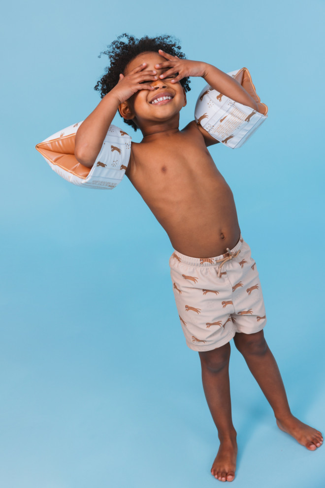 Detské plavkové boxerky od Swim Essentials s ochranou proti slnku UPF 50+ a s leoparďou potlačou si vaše deti hneď zamilujú. Plavky sú totiž vyrobené z odolného strečového materiálu, ktorý dokonale ochráni kožu pred slnečným žiarením.