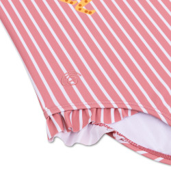 Vďaka kvalitnej látke a premyslenému strihu s prekríženými nastavovacími ramienkami sa plavky dobre nosia. Roztomilý volánik je už len čerešničkou na torte. Plavky je možné kombinovať s klobúčikom a ďalšími výrobkami rovnakej značky. Plavky do veľkosti 110/116 majú volániky a obrázok leoparda, väčšie ich nemajú.Dievčenské plavky sú vhodné do bazéna aj mora