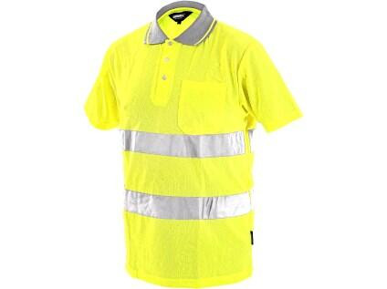 Výstražné tričko s límečkem, krátký rukáv, reflexní pruhy, rozhalenka, zapínání na 3 knoflíčky, na levé straně náprsní kapsička, s úpravou Wicking Finish pro rychlé a rovnoměrné schnutí. Doporučené použití: stavebnictví, silničáři, řidiči, logistika, údržba, kolo, motorky, skladování.