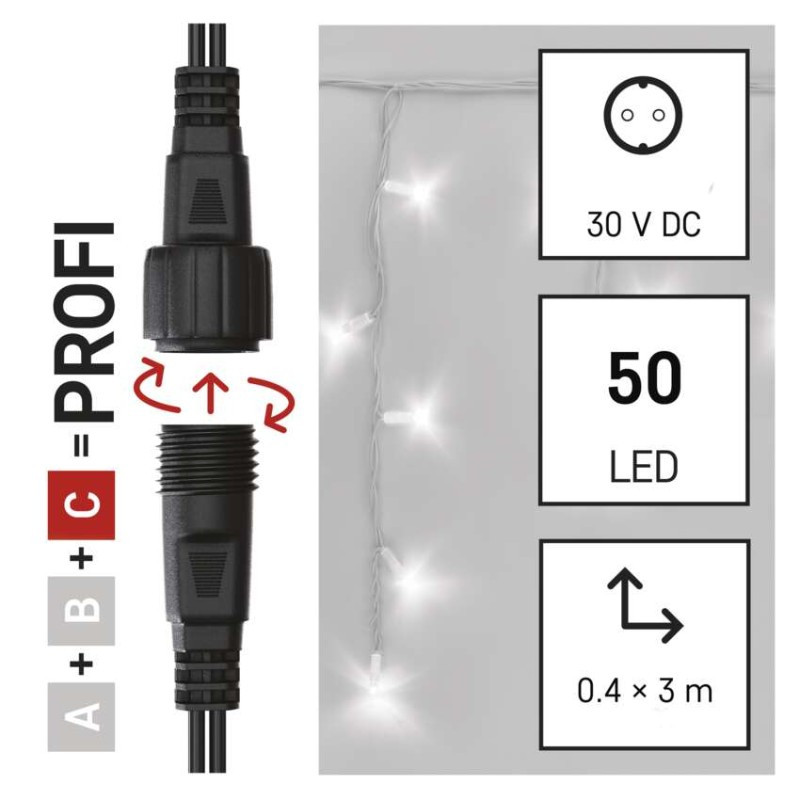 Profi LED spojovacia reťaz biela – cencúle, 3 m, vonkajšia, studená biela