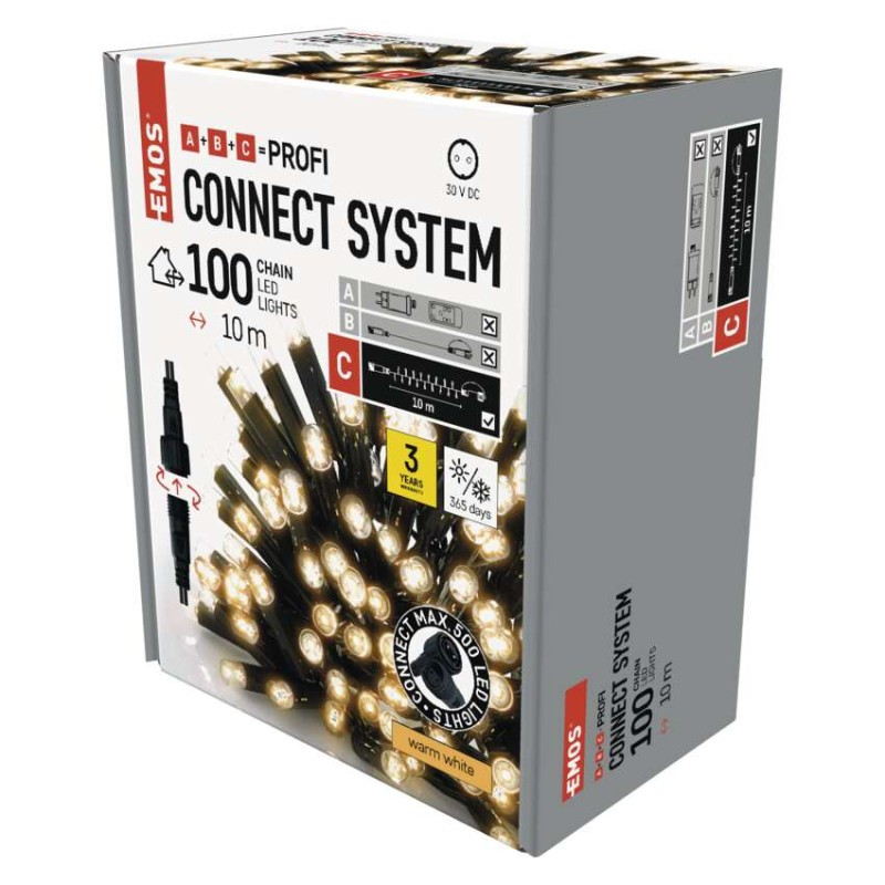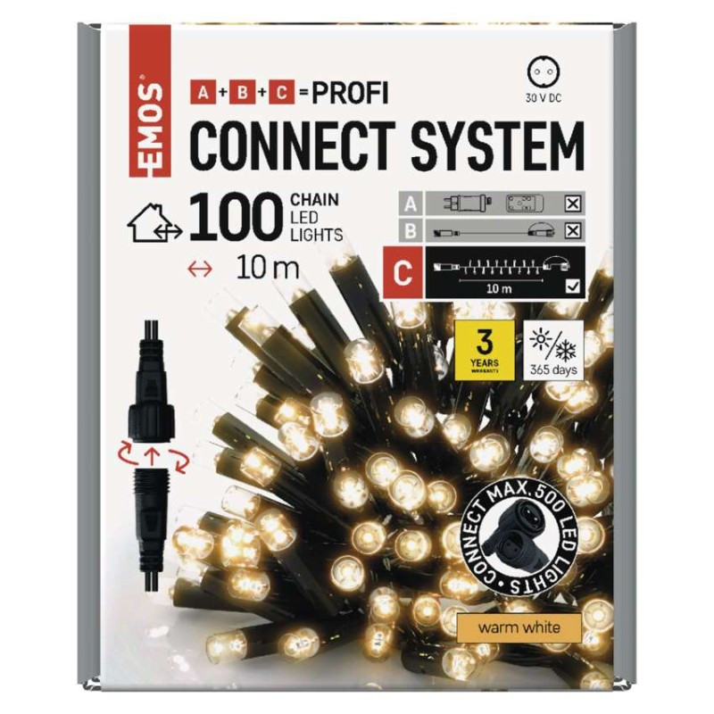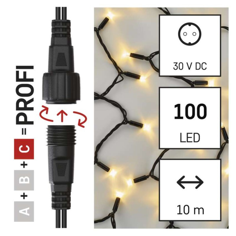 Profi LED spojovacia reťaz čierna, 10 m, vonkajšia aj vnútorná, teplá biela, časovač