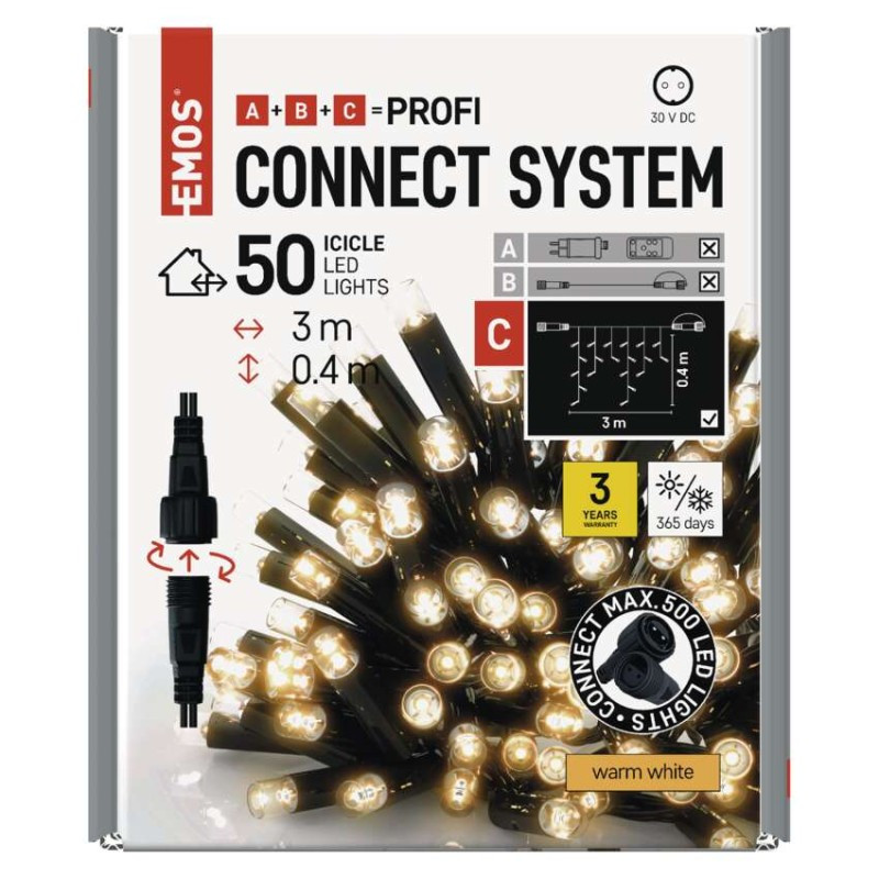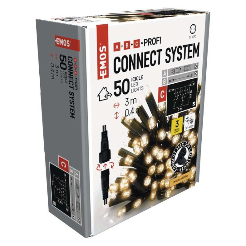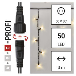 Profi LED spojovacia reťaz čierna – cencúle, 3 m, vonkajšia, teplá biela