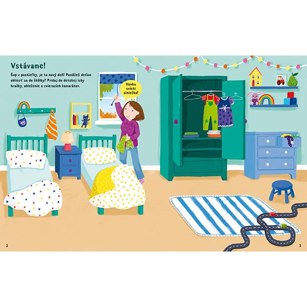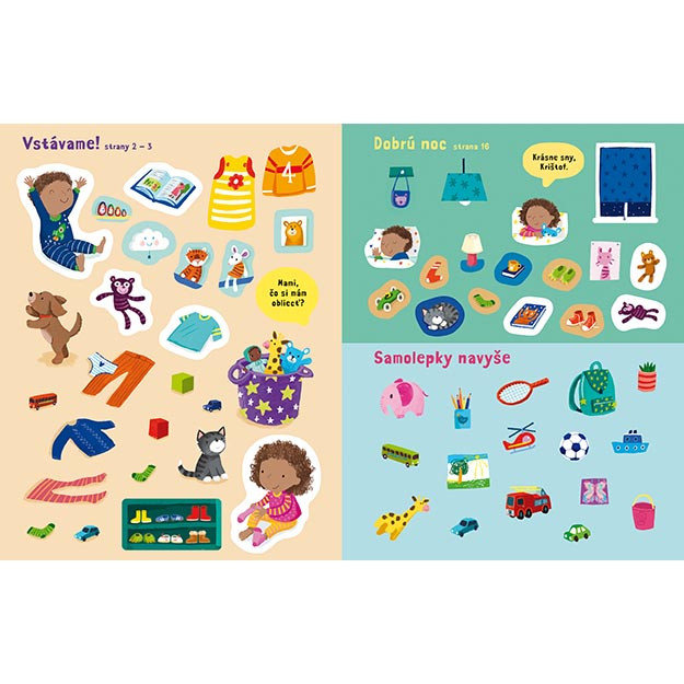 Samolepková knižka Môj deňZažite bežný deň očami dieťaťa – od ranného vstávania až po večerné zaspávanie!