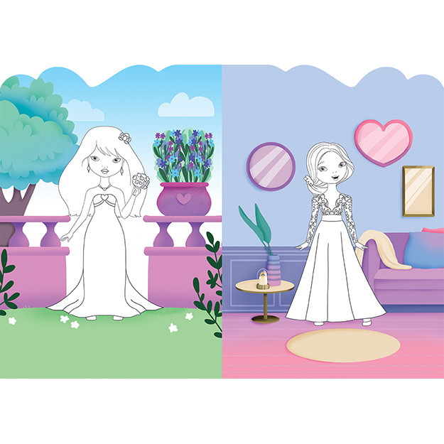 Šaty pro nevěsty Tvarované oblékání se samolepkamiŠaty pre nevesty – tvarovaná knižka plná svadobnej módy!Staň sa svadobnou dizajnérkou a vytvor tie najkrajšie svadobné šaty pre nevesty! Táto tvarovaná omaľovánková knižka obsahuje 24 strán plných módnych omaľovánok a aktivít. Okrem toho nájdeš v knižke 8 strán samolepiek, s ktorými môžeš nevesty ozdobiť krásnymi šatami, závojmi a doplnkami. Tvorivé obliekacie aktivity rozvíjajú fantáziu, kreativitu a jemnú motoriku. Ideálna zábava pre všetky malé módne návrhárky, ktoré milujú krásne šaty!