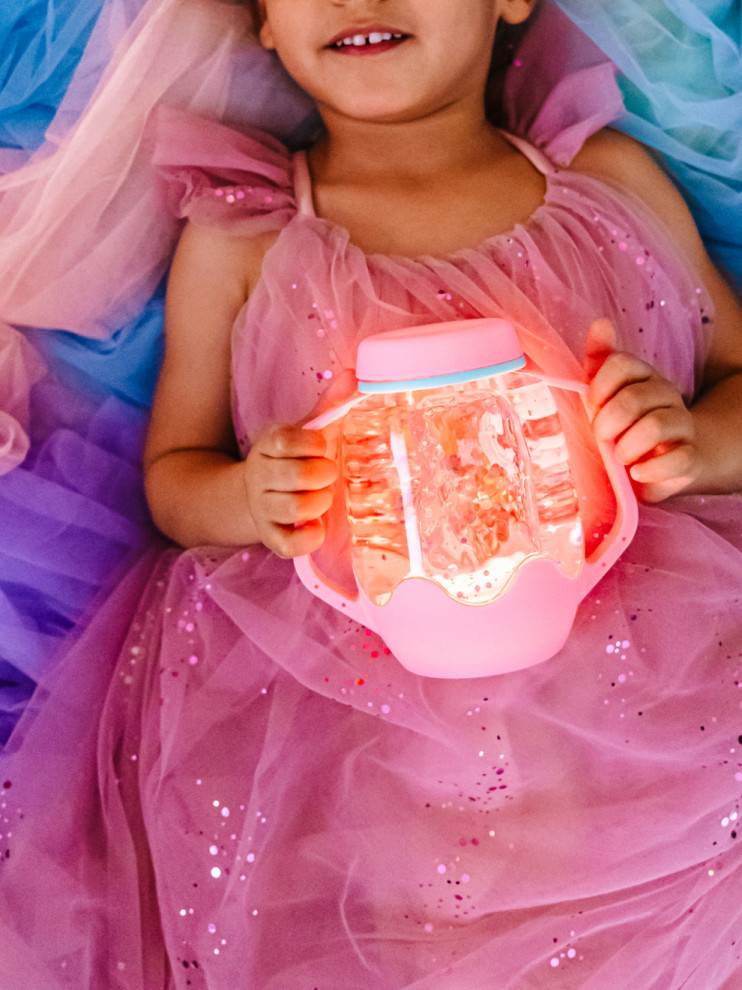 Senzorická fľaša Bubble gumFascinujúca fľaša, ktorá upúta zmyslyObjavte kúzlo senzorickej hry s Glo Pals fľašou v odtieni Bubble gum! Táto interaktívna nádoba prináša deťom fascinujúci zážitok plný svetiel a farieb, ktorý podporuje ich zmyslový vývoj, kreativitu a zároveň má upokojujúci účinok.Rozžiarte detskú predstavivosťVodou aktivované svetlá: Po naplnení vodou sa fľaša rozžiari upokojujúcimi farbami, čím vytvára magickú atmosféruDotykové ovládanie: Jemným poklepaním na nádobu alebo trasením môžu deti meniť farby podľa svojej náladyBezpečný dizajn: Nádoba má protišmykové rukoväte a tesniace viečko, ktoré zabraňuje vyliatiu obsahuPodpora zmyslového vývoja: Stimuluje vizuálne vnímanie, jemnú motoriku a rozpoznávanie fariebPrispôsobiteľná hra: Deti môžu do nádoby pridávať rôzne predmety (nie sú súčasťou balenia) - napr. trblietky, figúrky, Glo Pals Senzorické kocky a vytvárať si vlastné senzorické zážitkyIdeálny darček pre malých objaviteľov Vhodné pre deti od 18 mesiacov: Navrhnuté s ohľadom na bezpečnosť a potreby najmenšíchJednoduchá údržba: Po hre stačí nádobu vyprázdniť a umyť ručne mydlovou vodouEnergeticky úsporné: Na prevádzku sú potrebné 3 AAA batérie (nie sú súčasťou balenia), ktoré vydržia dlhšie vďaka funkcii automatického vypnutia pri obrátení nádobyMagická fľaša plná svetiel a fantázieGlo Pals Senzorická fľaša Bubble gum je perfektným darčekom pre deti, ktoré milujú svetlá, farby a interaktívnu hru. Ponúka deťom príležitosť prirodzene objavovať nové podnety cez dotyk, pohyb a farby. Podnecuje ich predstavivosť, jemnú motoriku a zároveň pôsobí uvoľňujúco v momentoch, keď potrebujú spomaliť.
