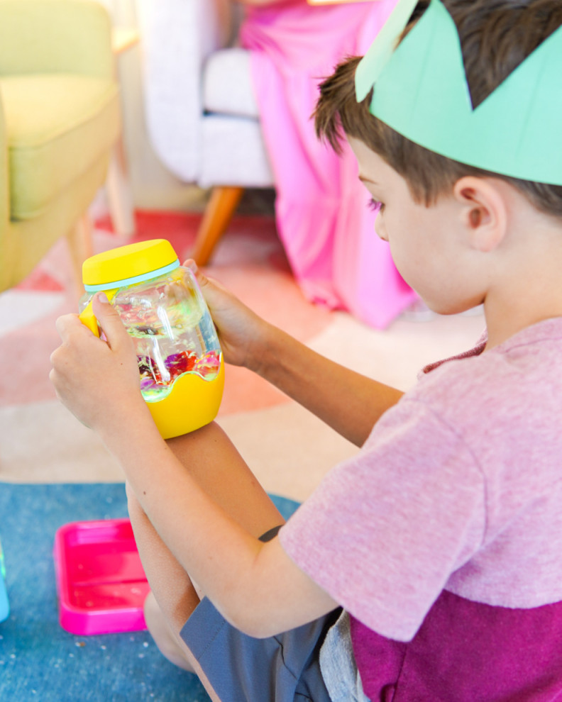 Senzorická fľaša Honey BeeFascinujúca fľaša, ktorá upúta zmyslyObjavte kúzlo senzorickej hry s Glo Pals fľašou v odtieni Honey Bee! Táto interaktívna nádoba prináša deťom fascinujúci zážitok plný svetiel a farieb, ktorý podporuje ich zmyslový vývoj, kreativitu a zároveň má upokojujúci účinok.Rozžiarte detskú predstavivosťVodou aktivované svetlá: Po naplnení vodou sa fľaša rozžiari upokojujúcimi farbami, čím vytvára magickú atmosféruDotykové ovládanie: Jemným poklepaním na nádobu alebo trasením môžu deti meniť farby podľa svojej náladyBezpečný dizajn: Nádoba má protišmykové rukoväte a tesniace viečko, ktoré zabraňuje vyliatiu obsahuPodpora zmyslového vývoja: Stimuluje vizuálne vnímanie, jemnú motoriku a rozpoznávanie fariebPrispôsobiteľná hra: Deti môžu do nádoby pridávať rôzne predmety (nie sú súčasťou balenia) - napr. trblietky, figúrky, Glo Pals Senzorické kocky a vytvárať si vlastné senzorické zážitkyIdeálny darček pre malých objaviteľov Vhodné pre deti od 18 mesiacov: Navrhnuté s ohľadom na bezpečnosť a potreby najmenšíchJednoduchá údržba: Po hre stačí nádobu vyprázdniť a umyť ručne mydlovou vodouEnergeticky úsporné: Na prevádzku sú potrebné 3 AAA batérie (nie sú súčasťou balenia), ktoré vydržia dlhšie vďaka funkcii automatického vypnutia pri obrátení nádobyMagická fľaša plná svetiel a fantázieGlo Pals Senzorická fľaša Honey Bee je perfektným darčekom pre deti, ktoré milujú svetlá, farby a interaktívnu hru. Ponúka deťom príležitosť prirodzene objavovať nové podnety cez dotyk, pohyb a farby. Podnecuje ich predstavivosť, jemnú motoriku a zároveň pôsobí uvoľňujúco v momentoch, keď potrebujú spomaliť.