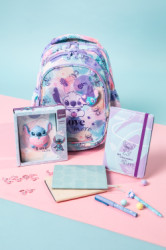 Školská taška Prime 41 cm Stitch PastelŠkolský batoh s inovatívnym dizajnomŠkolská taška Coolpack Prime 41 cm Stitch Pastel je ideálnym batohom pre mladých školákov, ktorí potrebujú praktický, pohodlný a štýlový batoh. S dvoma hlavnými priehradkami a organizérom v prednom vrecku na drobnosti, ako sú kľúče alebo telefón, bude všetko usporiadané. Pohodlné polstrované ramenné popruhy a pevný EVA chrbát zabezpečujú stabilitu a komfort aj pri dlhodobom nosení. Batoh má tiež bočné vrecká na fľaše a kľúčenku. Súčasťou školskej tašký je kľúčenka. Vyrobený z kvalitného nepremokavého polyesteru 600D a s objemom 21 litrov poskytuje dostatok priestoru na školské potreby.
