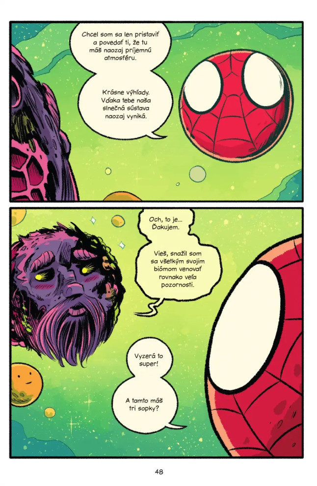 Spider-Man 6: Kozmický chaosKeď superhrdina vyrazí do vesmíru, chaos je zaručený!Spider-Man má jasnú misiu – vrátiť Silver Surferovi jeho legendárny surf. No keď do hry vstúpia tajomné talizmany s nevídanou kozmickou silou, všetko sa zamotá. Po boku Strážcov galaxie sa Peter Parker musí postaviť hrozbe, ktorá môže zničiť celý vesmír.Prečo si túto knihu zamilujú malí aj veľkí fanúšikovia:Strhujúci príbeh plný akcie, napätia a humoruVesmírne dobrodružstvo s obľúbenými hrdinami ako Groot, Rocket, Gamora či Star-LordSkvelý darček pre fanúšikov Marvelu a Spider-ManaIdeálne čítanie pre deti, ktoré milujú dobrodružstvo a superhrdinovVýrazné ilustrácie a pútavé dialógy, ktoré vtiahnu do deja