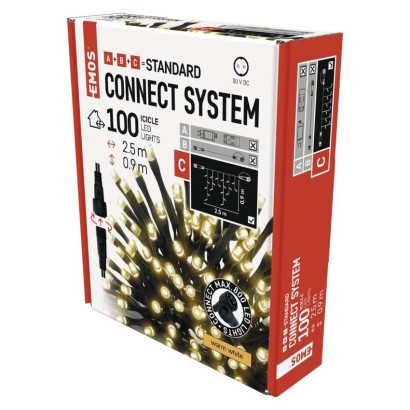 • Standard LED spojovacia vianočná reťaz – cencúle, 2,5 m, vonkajšia, teplá biela