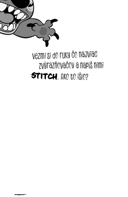 Stitch - Deštrukčný denníkDenník, ktorý má pravidlá narubyKlasické denníky ti prídu nudné? Stitch to vidí inak! Tento deštrukčný denník je plný bláznivých úloh, ktoré ťa povzbudia k tvorivosti, zábave a trochu aj chaosu. Kresli nohami, namoč stránky do vody, vytrhni ich a použi ako baliaci papier – v tejto knihe sa pravidlá nepočítajú. Je to denník, ktorý konečne robí radosť. Pre všetkých malých rebelov a veľkých kreatívcov – Stitch je pripravený, a ty?