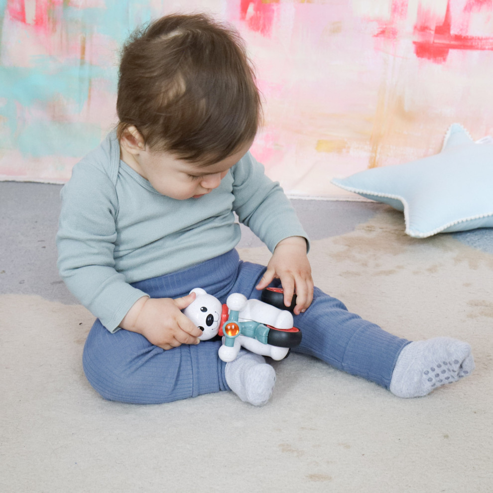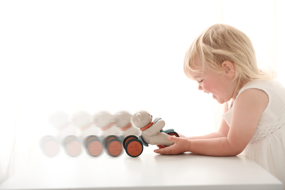 Tolo Medvedík na trojkolke stimuluje koordináciu rúk a očí a podporuje hrubú motoriku detí. Stláčaním hlavičky a sledovaním pohybu medvedíka sa deti učia o princípe príčiny a následku. Hračka je vyrobená z kompostovateľného BIO plastu z pšenice, bezpečného pre najmenšie detičky.