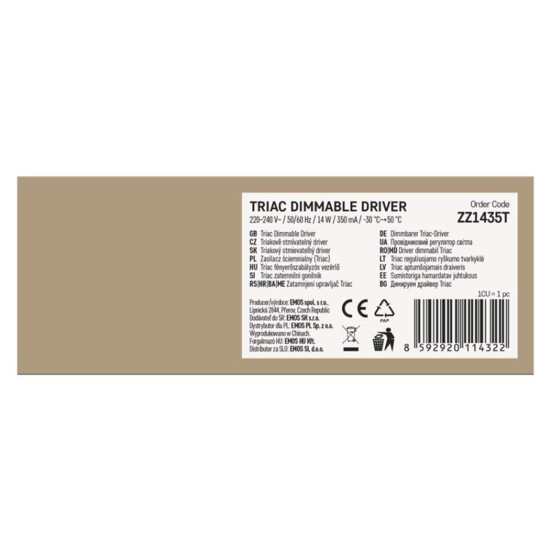 Triakový stmievateľný ovládač pre LED svietidlo 350mA 14W