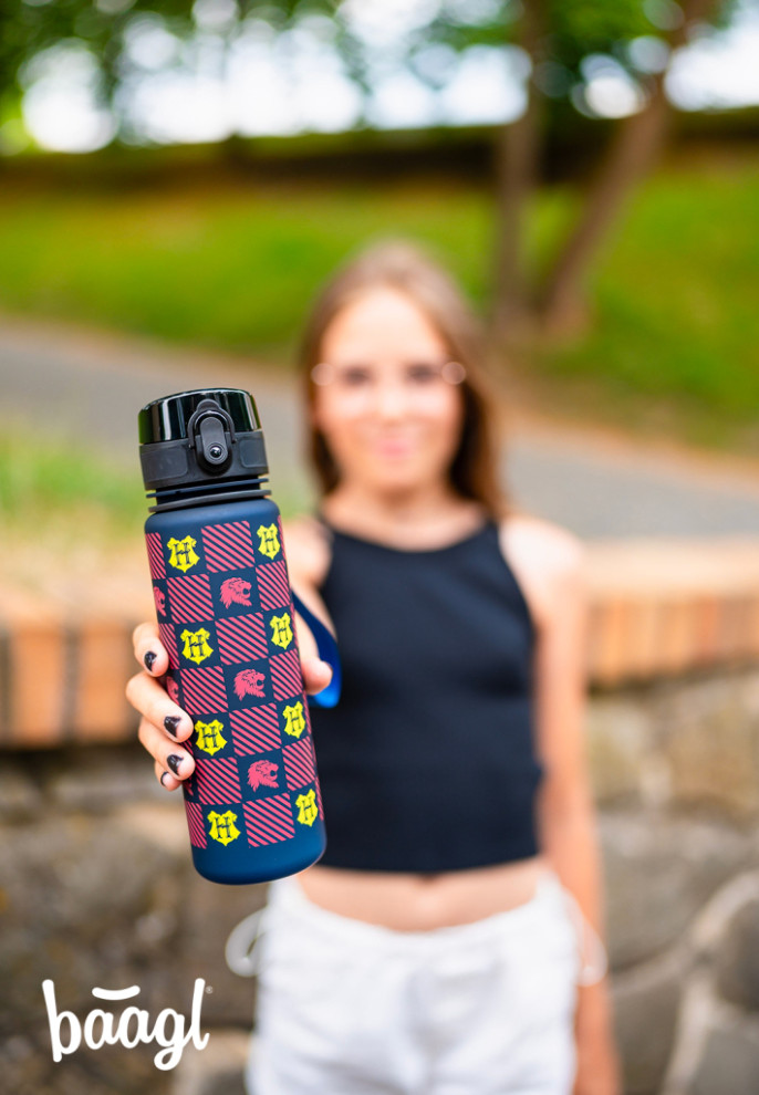 Tritanová fľaša pre deti Harry Potter Rokfort 500 mlV školskej výbave nesmie chýbať poriadna fľaša na nápojeFľaša od BAAGLa je vhodná ako do školy, tak aj na výlety alebo na športový krúžok. Uzamykateľné viečko neprepustí ani kvapku nápoja a zabezpečuje jednoduchú a intuitívnu manipuláciu. Súčasťou fľaše je sitko, vďaka ktorému môžete fľašu použiť i na limonády s ovocím alebo čaj (materiál je vhodný aj na horúce nápoje). K fľaši je pripevnené pútko, ktoré umožňuje pohodlné nosenie v ruke.Certifikovaný tritánový materiál zaručuje maximálnu bezpečnosť a kvalitu nápojaNevydáva nepríjemný plastový zápach, ako je to pri iných plastových materiáloch, a zároveň neobsahuje žiadne zdraviu škodlivé látky (BPA, PVC, ftaláty, či iné). Ostatne, výrobky z tritánu sa používajú aj v zdravotníctve. Používaním fľaše znížite plastový odpad z jednorazových PET fliaš a pomôžete tak znížiť objem vyprodukovaného plastového odpadu, ktorý doteraz končí prevažne na skládkach, v spaľovniach, alebo často aj v prírode.Objem fľaše je 500 ml.
