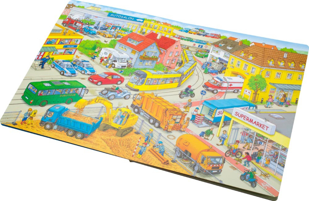 Velká knížka o autech pro malé vypravěčeNa cestách, na diaľniciach, na závodnej dráhe, ale aj inde – všade je možné vidieť autá a rôzne ďalšie vozidlá.Niektoré sa len predvádzajú, niektoré pomáhajú na stavbách, alebo dokonca pri zachraňovaní ľudských životov… Popri množstve podrobných obrázkov prináša kniha aj množstvo námetov pre vlastné príbehy malých milovníkov áut. Táto veľkoformátová kniha prináša panoramatické obrazové vhľady do prostredia ciest, stavieb, ale aj iných. Bohato prepracované názorné ilustrácie sú pre deti veľkým lákadlom, bezodnou studnicou inšpirácie a zároveň obrovskou výzvou – množstvo detailov ich priťahuje, podnecuje ich predstavivosť a fantáziu.Malý rozprávač v interakcii s dospelým nielen opisuje, čo vidí na obrázkoch, a hlavne kreatívne a hravo rozpletá a opäť spája nekonečné nitky možných príbehov.Knihy tak veľmi účinne napomáhajú budovaniu slovnej zásoby, komunikačných zručností i logického myslenia. Dieťa cibrí svoj postreh, zrakovú a sluchovú pamäť, a robí tak prvé krôčiky na svojej ceste k rozvoju aktívneho čitateľstva.