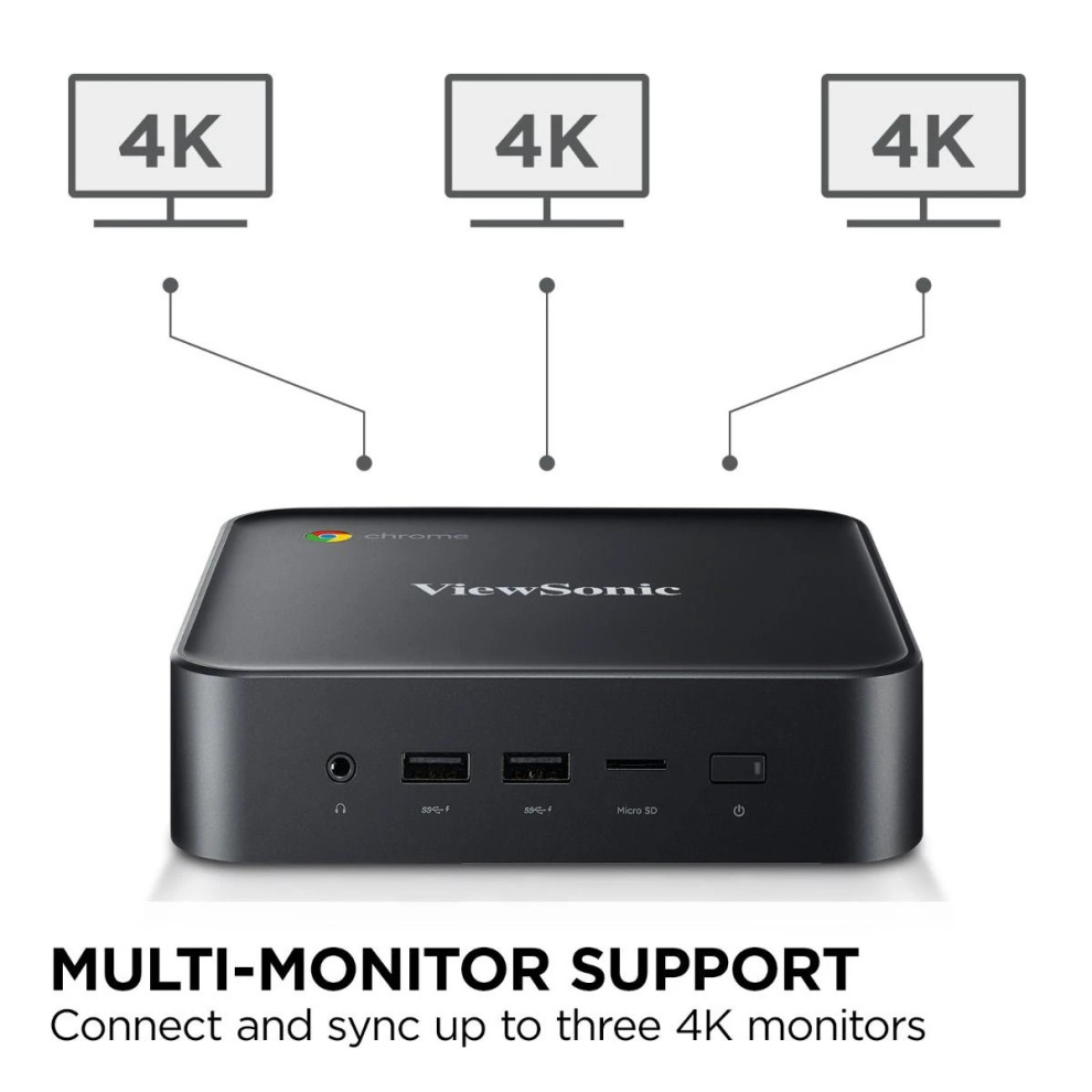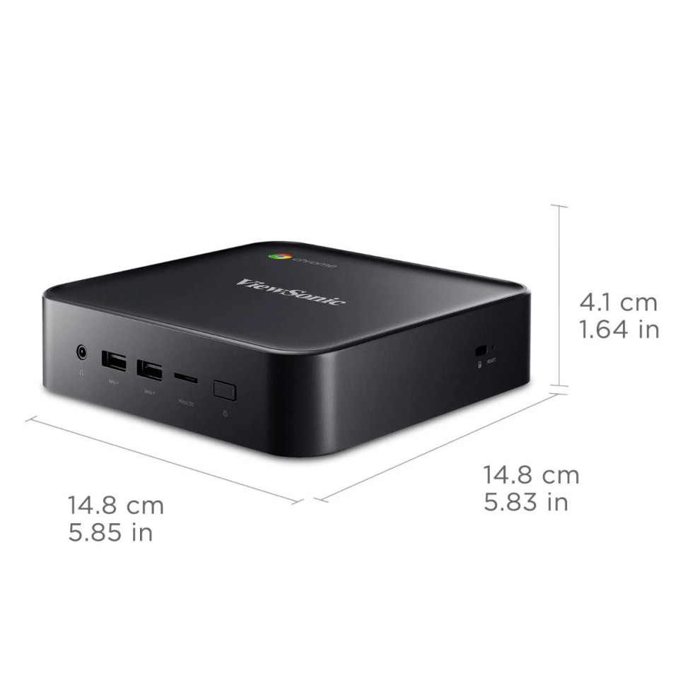 Chromebox, Intel Celeron 5205U, 8GB DDR4, eMMC 64GB, HDMI out x 2, uSD card x 1, USB-C x 1, USB 3.0 x 4, RJ45 x 1, Audio out (3.5mm Audio Jack), Black