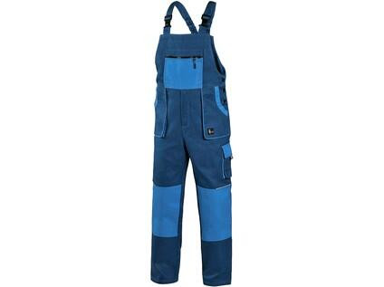 Pánské montérkové kalhoty s náprsenkou, náprsní kapsa na zip, pas vzadu do gumy, přední kapsy, boční kapsa na svinovací / skládací metr, boční kapsa na mobil / peněženku, zdvojená kolena, zadní kapsa s klopou, šle s gumou vzadu, reflexní doplňky. Doporučené použití: stavebnictví, lehký průmysl, logistika, skladová manipulace, autoservisy, údržba, montáže, zemědělství, zahrada, hobby.