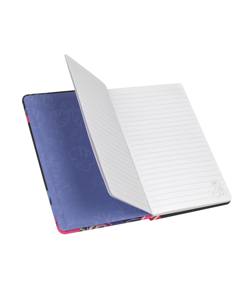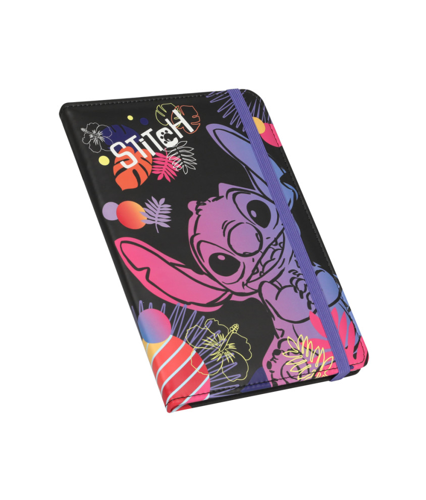 Zápisník A5 Stitch BlackKvalitný zápisník s PU kožou a elastickou gumkouZápisník A5 Stitch Black je ideálny na zapisovanie poznámok, nápadov alebo kresby. Má 80 linajkovaných strán, čo je ideálne pre každodenné písanie. Okrem toho je zápisník vybavený elastickou gumkou, ktorá zabezpečuje jeho bezpečné uzatvorenie a ochranu obsahu. PU koža, z ktorej je vyrobená obálka, dodáva zápisníku elegantný a kvalitný vzhľad. Tento zápisník je skvelým darčekom pre fanúšikov Stitcha, ale aj pre každého, kto si rád organizuje svoje myšlienky a plány.