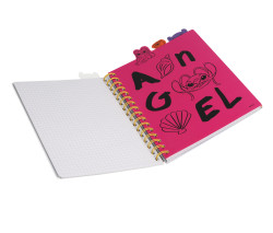Zápisník špirálový A5 so záložkami Stitch BlackZápisník s dušou rozprávkyZápisník špirálový A5 so záložkami Stitch Black Stitch Pastel je dokonalý spoločník na každý deň – do školy, práce alebo na zapisovanie kreatívnych nápadov. Obsahuje 100 štvorčekových strán a záložky s Disney motívmi, ktoré dodajú tvojim poznámkam čaro. Kompaktný formát A5 sa zmestí do každej tašky, zatiaľ čo špirálová väzba a praktické záložky ti pomôžu udržať poriadok a prehľad. Dizajn inšpirovaný ikonickým Stitchom očarí každého milovníka Disney rozprávok.