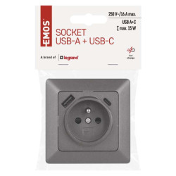 produktjedna zásuvka s ochranným kolíkom a výstupom USB 3 A max.